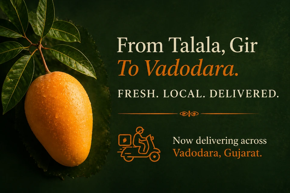 100% Organic, farm-fresh Kesar mangoes delivered directly to your doorstep in Vadodara.