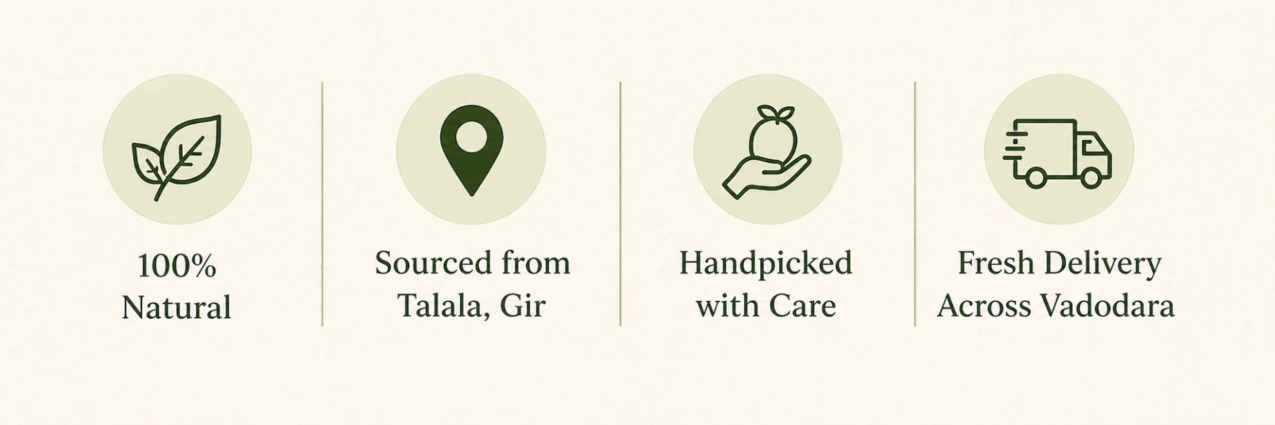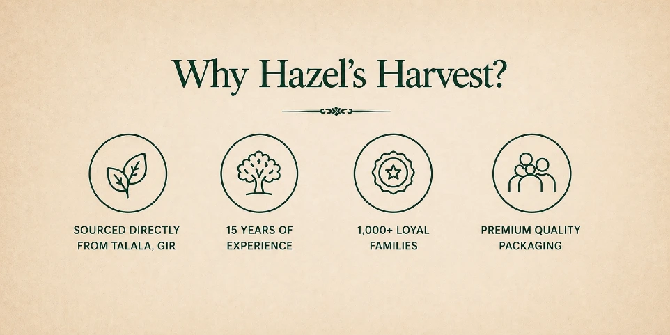 Every mango you receive is handpicked from the sun-kissed orchards of Talala, Gir. Grown with patience, nurtured by experienced farmers, and delivered fresh to your home in Vadodara — just as nature intended.